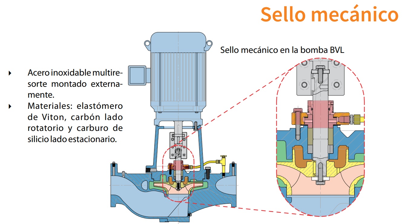 sello mecánico pueda ser reemplazado sin necesidad de desmontar la bomba. La