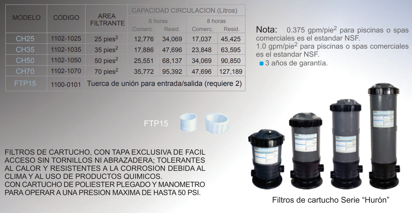 Filtro de Cartucho Hurón Inter Water – 25, 35, 50 y 70 pies