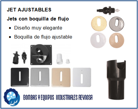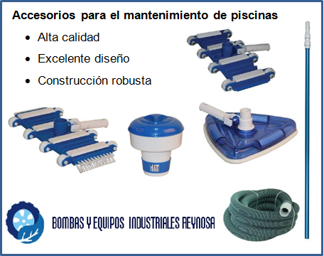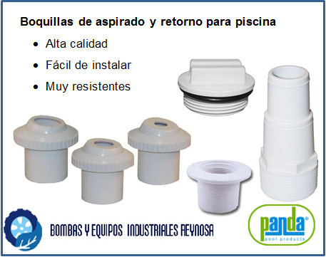 fondo, boquillas de retorno y aspirado, desnatadores, válvulas (bola, check y