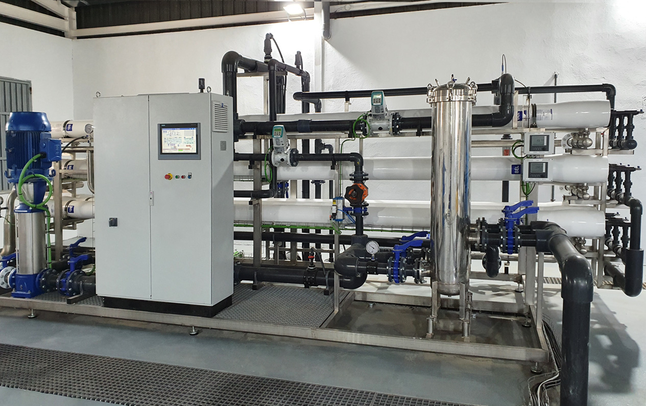 La ósmosis inversa es un proceso de filtración que utiliza una membrana semipermeable para purificar agua, eliminando impurezas como sales, minerales, bacterias y otros contaminantes. Al aplicar una presión mayor a la presión osmótica natural, el agua se fuerza a través de la membrana en sentido contrario al proceso de ósmosis, dejando atrás los solutos y produciendo agua limpia (permeado) y un concentrado de residuos (agua de rechazo). Este método es eficaz para la desalinización de agua de mar, el tratamiento de agua potable y diversas aplicaciones industriales.